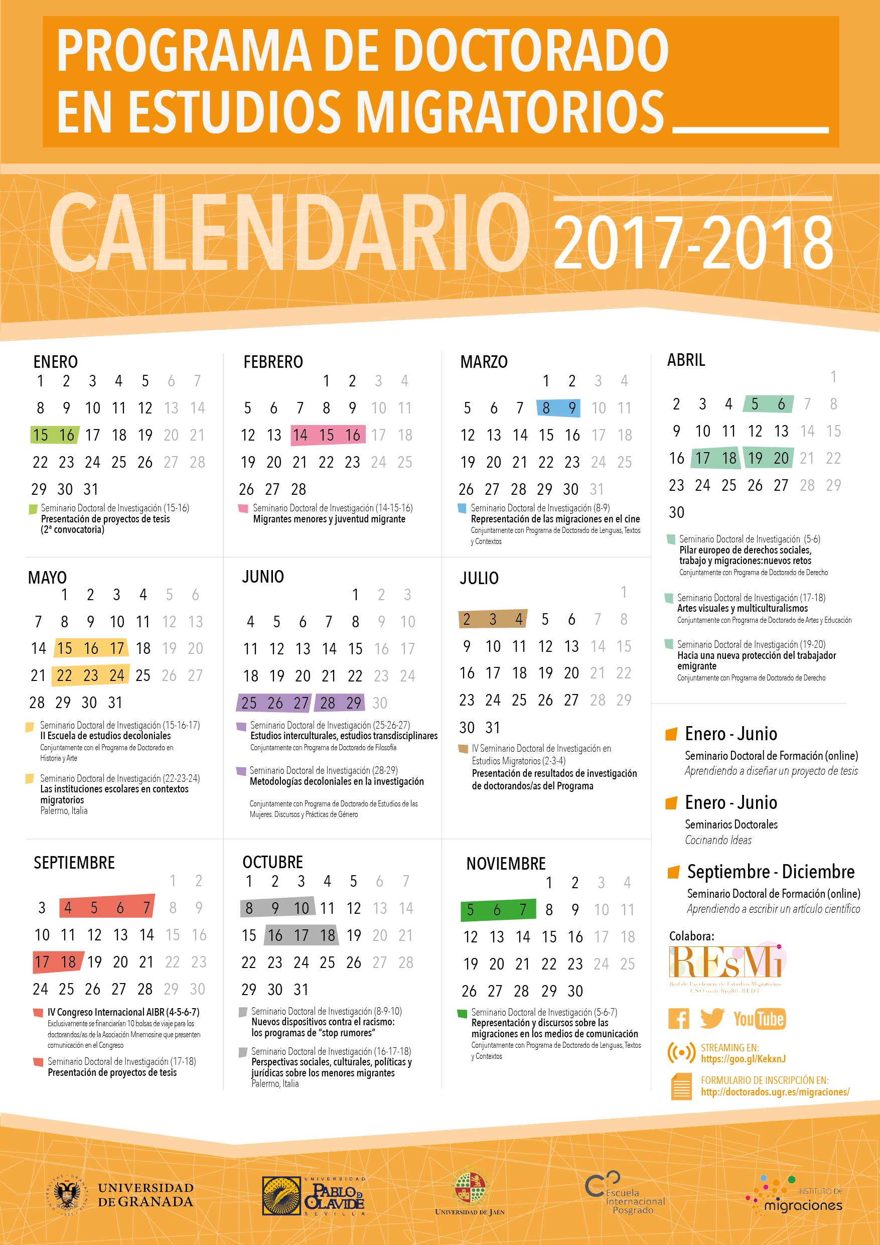 Cartel "Calendario 2017/18 Programa de Doctorado en Estudios Migratorios"